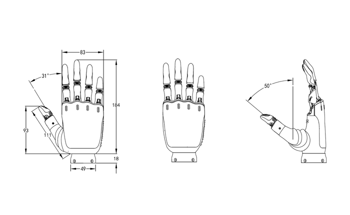 ● Human-like Hand Design: The design closely resembles the size and proportions of a human hand.